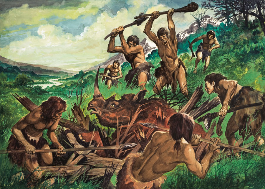 A caza foi unha actividade humana de importancia transcendental para o seu desenvolvemento físico e cerebral, aínda que tamén con repercusións negativas, xa que, co tempo, os humanos provocaron a desaparición de moitas especies.